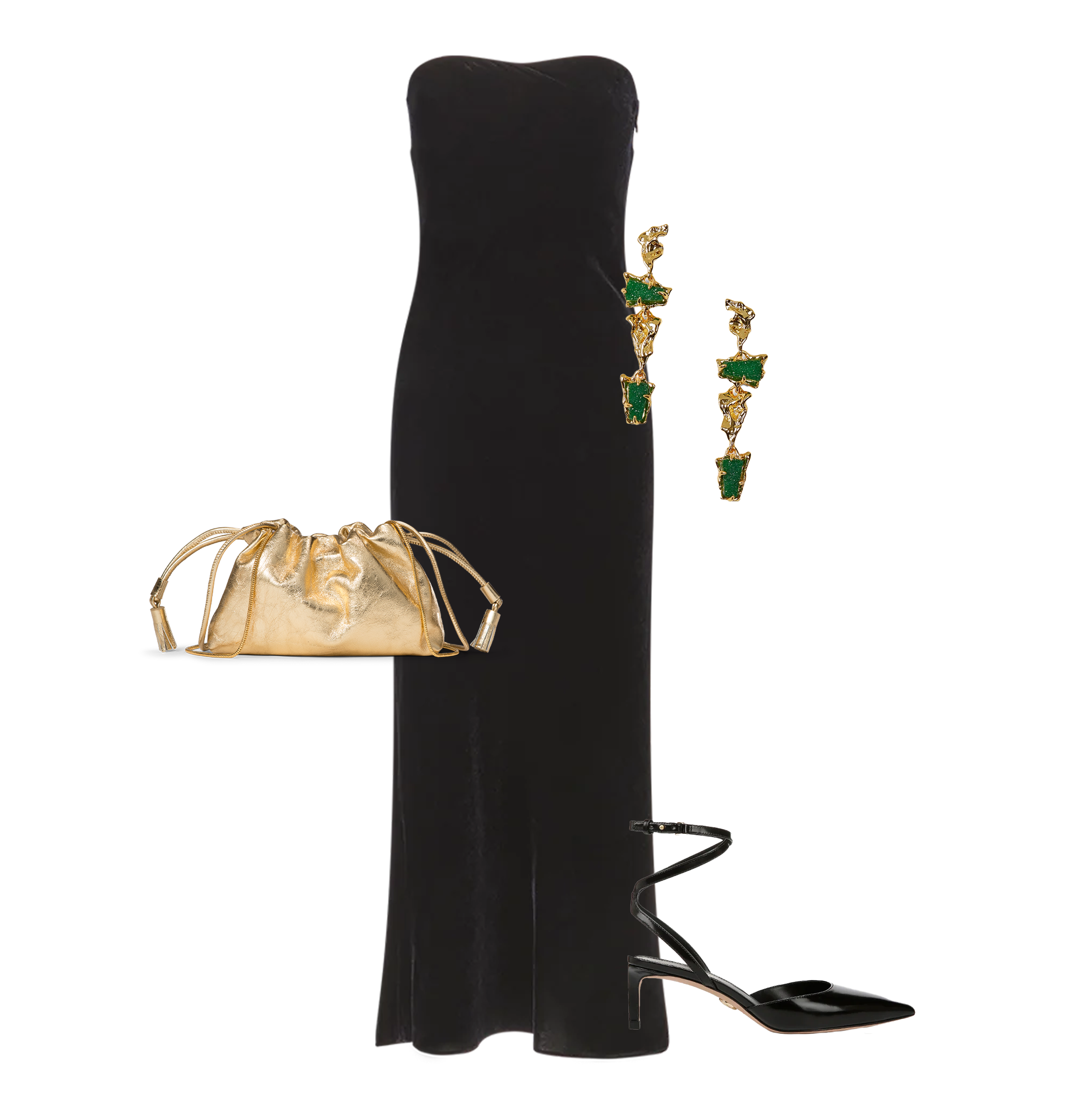 Considérés comme l'un des codes vestimentaires les plus formels, les mariages en cravate noire exigent une véritable tenue de soirée. Cela se traduit généralement par des robes longues (sans ourlet court ni midi) dans des tissus raffinés, luxueux et travaillés. Optez pour des soies riches, des mousselines et des crêpes, et évitez les matières trop décontractées comme le coton ou le lin. C'est aussi l'occasion idéale de miser sur l'éclat et la brillance grâce à des finitions métalliques, des perles ou des ornements qui ajoutent une touche théâtrale subtile, raffinée sans être excessive. Les talons sont la norme, mais des chaussures plates raffinées aux détails élégants peuvent constituer une alternative raffinée. Privilégiez un sac à main petit et structuré, comme une pochette élégante qui complète votre look sans voler la vedette. Et si votre robe est plutôt simple, des bijoux audacieux , comme des boucles d'oreilles audacieuses ou un collier sculptural, peuvent apporter la touche finale parfaite.
