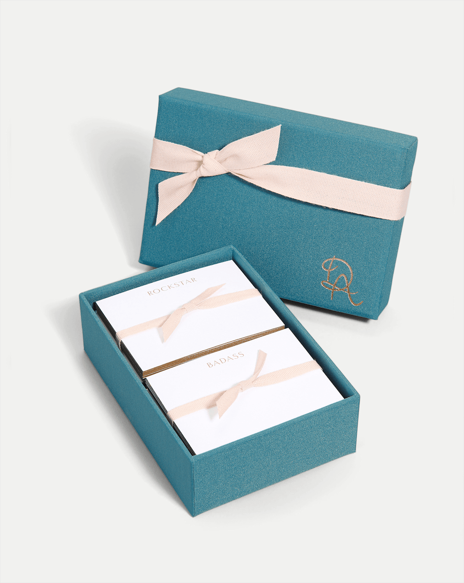 Une touche ludique pour votre table. Confectionnés en papier épais et lisse, ces marque-places ajoutent charme et élégance à votre prochain dîner. Chaque lot comprend quatre modèles amusants – Rockstar, Bombe, Beau Gosse ou Redoutable – gravés à l'encre dorée et rehaussés d'un liseré doré. Ils sont parfaits pour placer vos invités et donner le ton à la soirée. Dear Annabelle célèbre l'art d'offrir avec attention et de recevoir avec élégance. Conçue pour que chaque geste soit unique, la marque est convaincue que les plus beaux cadeaux sont personnels, les tables les plus mémorables sont celles où règne la joie, et qu'un mot écrit à la main est toujours apprécié.