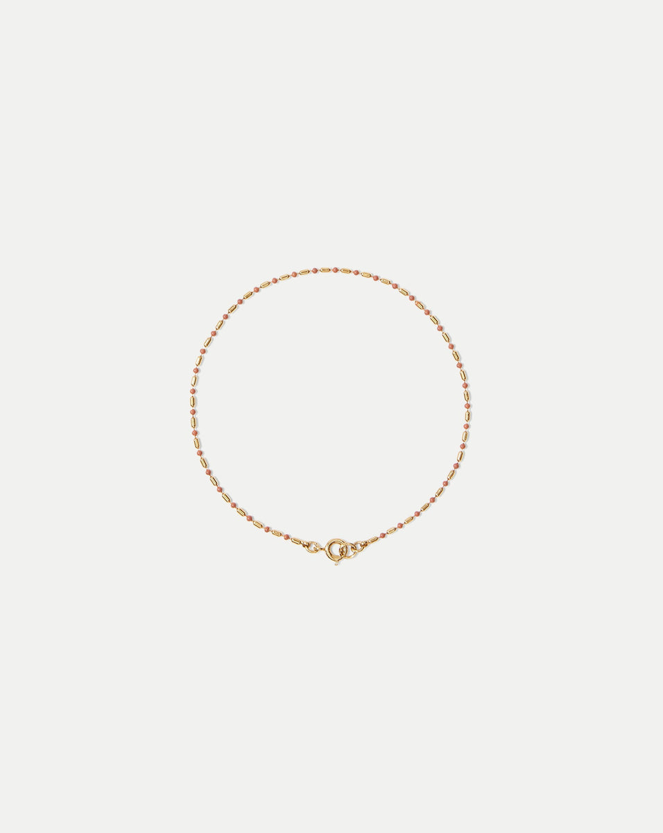 Le bracelet de cheville idéal pour tous les jours, prêt à vous accompagner partout où l'été vous mène. Cette chaîne délicate est composée d'un mélange de perles dorées et mauves recouvertes d'émail. Elle est plaquée IP pour une durabilité et une étanchéité accrues, et se ferme facilement grâce à un fermoir en Q. Portez-la seule ou avec d'autres couleurs : elle est parfaite pour la plage, la piscine et bien plus encore.