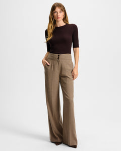 Un pantalon polyvalent, conçu pour flatter votre silhouette. Confectionné avec expertise aux États-Unis dans un mélange de laine stretch italien, le pantalon Giovanna présente une taille haute à pinces, sans passants pour une allure épurée et sans plis, et une jambe large et décontractée. Des poches latérales en biais, des poches arrière passepoilées et une fermeture à trois boutons complètent le look. Associez ce pantalon beige à un t-shirt impeccable ou à un simple pull pour une allure élégante.