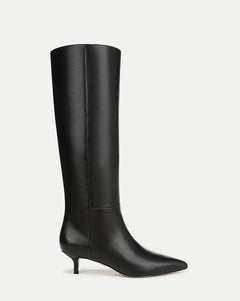 La botte haute Lisa, best-seller, est désormais revisitée avec un petit talon. Confectionnée en cuir noir premium, elle présente une tige montante et un élégant bout pointu. Intemporelle, cette botte à enfiler est parfaite pour un rendez-vous galant et bien plus encore. Associez-la à vos robes et jupes préférées ; vous réussirez à tous les coups.