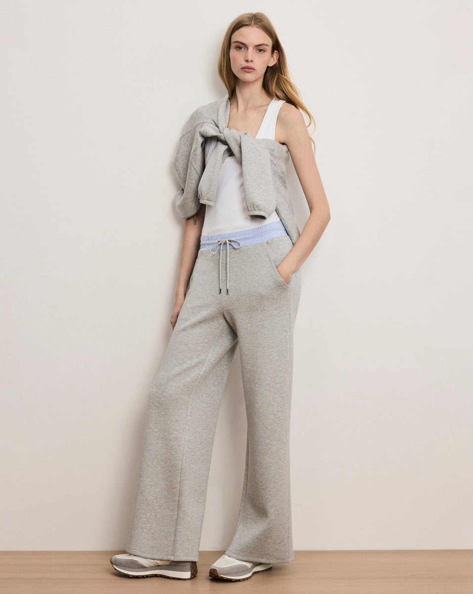 Off-duty, done right. Made from stretch scuba with a double-knit construction, the grey Ernie pant features a wide-leg silhouette and clean lines, delivering both structure and all-day comfort. Pair with the matching Ernie pant for a more refined take on the sweatsuit. These knitted wide-leg pants are perfect for days on the go—and travel.