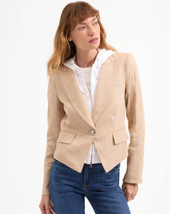 Our best-selling Hosanna jacket is back, now in linen. This classic piece features single-breasted tailoring, seaming at the waist for a flattering finish, and a crisp notched lapel. Its linen blend keeps it easy and cool year-round. This chic style pairs well with everything from floral dresses to jeans.