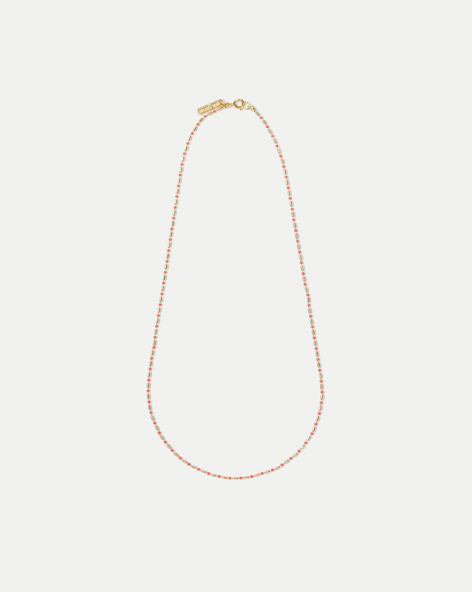 The effortless everyday necklace, made for layering. This dainty, 18-inch chain features a mix of 12-karat gold-plated brass and pink enamel-covered beads, securing with a Q clasp for ease. Layer with the Enamel Bead Chain Necklace (or two, or three), mixing and matching colors, and style with your favorite VB tees, tank tops, and swimwear.