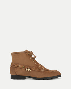 Your favorite boating loafer—reimagined as a boot. Crafted from premium tan suede, the Phaedra is a classic lace-up ankle bootie, accented with classic boat shoe-inspired stitching along the vamp and wraparound lacing. Three gold charms—including our signature V—and a durable rubber lug sole complete the look. Pair it with your favorite VB denim.